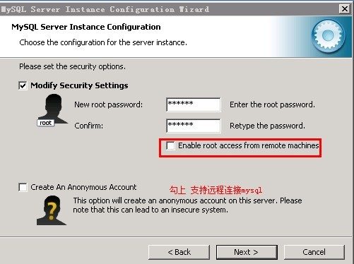 (mysql數據庫用戶名和密碼設置) 設置root密碼,然后next