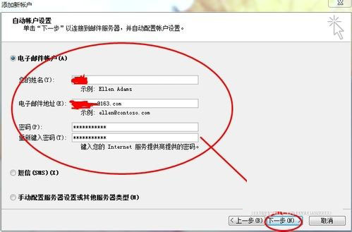 5、在“接收郵件(pop、IMAP或HTTP)服務器:”字段中輸入 pop.163.com。在“發送郵件服務器 (SMTP):”字段中輸入:smtp.163.com,單擊“下一步”。