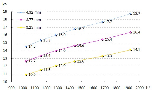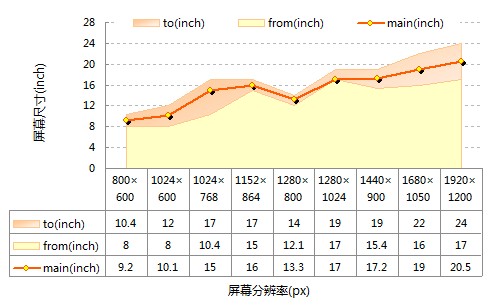 計算不同顯示器上的字號大小 用屏幕的物理寬度除以像素寬度,就可以得到每個像素的寬度。然后用指定的文字物理大小除以這個數(shù),就可以得到在不同分辨率下所需的字號。例如要顯示4.32mm見方的文字,各分辨率下分別需要如下的字號(對筆記本和臺式機分別統(tǒng)計):![]() 不同分辨率下需要的字號 可以看出筆記本和臺式機的尺寸相差很大,為方便使用,使用各分辨率的主流尺寸或平均尺寸計算出指定字號在每個分辨率下所需的字號。(下圖去掉了基本只用在筆記本上的那些分辨率),以4.32mm、3.77mm、3.25mm為例(17寸1280*1024分辨率下的16、14和12號字):