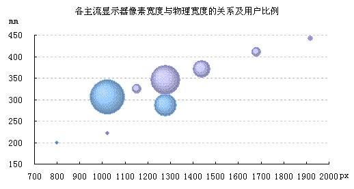 網(wǎng)頁設計師往往需要考慮不同客戶端的瀏覽體驗。文字大小,是用戶體驗中的一個重要部分。不同的分辨率,不同的顯示器尺寸,不同的DPI,乃至不同的瀏覽器設置,都會對最終展現(xiàn)的文字大小帶來影響。雖然現(xiàn)在很多瀏覽器已經(jīng)可以方便地縮放頁面,但用戶每次光臨都要重新縮放,總歸麻煩,何況還有許多用戶不知道如何縮放頁面。最好還是根據(jù)用戶的分辨率給用戶一個比較體貼的默認字號,那這個字號多大合適呢? 12px?14px?15px?16px? 還是壓根就不應該使用px這個單位呢? 問題的根源,在于屏幕上的一切字號單位(px,pt,em)都是相對單位,單憑它們并不能確定文字的實際大小。何況人對文字大小的根本感知在于眼睛的視角,這不僅取決于文字的物理尺寸,還取決于它到人眼的距離。 首先假定一個我們希望達到的文字物理尺寸,例如設定為17寸1280 * 1024顯示器上的16px,計算可得它的高度約是4.32mm,我們計劃讓網(wǎng)頁文字在大部分顯示器上都比較接近這個大小,那么在不同分辨率下應該顯示成多大的字號呢? 統(tǒng)計用戶主要的分辨率和對應的屏幕大小 要在物理尺寸和分辨率之間換算,首先要統(tǒng)計分辨率和對應的屏幕尺寸。用戶分辨率的分布情況可以從網(wǎng)站的統(tǒng)計日志里獲得。由于每個分辨率設置可能對應好幾個不同尺寸的屏幕,而屏幕尺寸又無法通過網(wǎng)頁獲得,只好對現(xiàn)在的顯示器市場進行統(tǒng)計分析:針對某一分辨率,統(tǒng)計可能的屏幕尺寸范圍,從最小到最大,相對主流的是多大(或使用該范圍的中間值作為主流尺寸)。如下圖所示: ![]() 電腦顯示器市場(產(chǎn)品種類繁多,難免掛一漏萬,數(shù)據(jù)僅供參考) 計算每個分辨率主流屏幕尺寸的物理寬度 現(xiàn)在的顯示器長寬比不僅有4:3的標準屏,16:10的寬屏,還有更多不規(guī)則比例,為了在不同長寬比的顯示器之間進行比較,統(tǒng)一使用橫向分辨率來統(tǒng)計。用主流尺寸和長寬比(假設像素的長和寬相同)計算出屏幕寬度(英寸),再換算成公制(毫米),將其一一對應就可看出屏幕大小的趨勢。再結合各分辨率的用戶分布,結果如下圖所示(圖片中每個點對應一個分辨率,橫軸為屏幕橫向的像素數(shù),縱軸為該屏幕的物理寬度,氣泡大小表示使用該分辨率的用戶人數(shù)。其中藍色氣泡表示標準屏,紫色表示寬屏):最大的三個氣泡分別是1024*768,1280*1024,1280*800。 ![]()