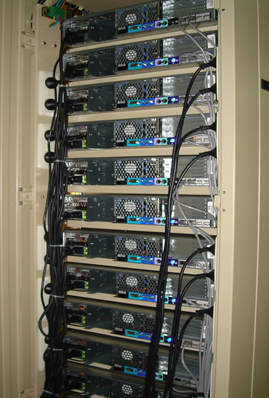 機(jī)架式服務(wù)器是一種外觀按照統(tǒng)一標(biāo)準(zhǔn)設(shè)計(jì)的服務(wù)器,配合機(jī)柜統(tǒng)一使用。可以說機(jī)架式是一種優(yōu)化結(jié)構(gòu)的塔式服務(wù)器,它的設(shè)計(jì)宗旨主要是為了盡可能減少服務(wù)器空間的占用,而減少空間的直接好處就是在機(jī)房選擇機(jī)架式服務(wù)器托管的時(shí)候價(jià)格會(huì)便宜很多。 機(jī)架服務(wù)器的寬度為19英寸,高度以U為單位(1U=1.75英寸=44.45毫米),通常有1U,2U,3U,4U,5U,7U幾種標(biāo)準(zhǔn)的服務(wù)器。機(jī)柜的尺寸也是采用通用的工業(yè)標(biāo)準(zhǔn),通常從22U到42U不等;機(jī)柜內(nèi)按U的高度有可拆卸的滑動(dòng)拖架,用戶可以根據(jù)自己服務(wù)器的標(biāo)高靈活調(diào)節(jié)高度,以存放服務(wù)器、集線器、磁盤陣列柜等網(wǎng)絡(luò)設(shè)備。服務(wù)器擺放好后,它的所有I/O線全部從機(jī)柜的后方引出(機(jī)架服務(wù)器的所有接口也在后方),統(tǒng)一安置在機(jī)柜的線槽中,一般貼有標(biāo)號(hào),便于管理。 看看下面的兩張圖片你就明白了為什么要推出機(jī)架式服務(wù)器了: