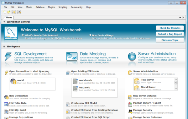 MySQL Workbench是一個(gè)統(tǒng)一的可視化開發(fā)和管理平臺(tái),該平臺(tái)提供了許多高級(jí)工具,可支持?jǐn)?shù)據(jù)庫建模和設(shè)計(jì)、查詢開發(fā)和測(cè)試、服務(wù)器配置和監(jiān)視、用戶和安全管理、備份和恢復(fù)自動(dòng)化、審計(jì)數(shù)據(jù)檢查以及向?qū)?qū)動(dòng)的數(shù)據(jù)庫遷移。MySQL Workbench是MySQL AB發(fā)布的可視化的數(shù)據(jù)庫設(shè)計(jì)軟件,它的前身是 FabForce 公司的 DDesigner 4。