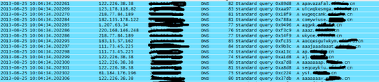 為了最大限度的降低命中DNS緩存的可能,一般攻擊者在構造攻擊包時都會隨機偽造查詢源IP地址、偽造隨機源端口,偽造隨機查詢ID以及待解析的域名。從筆者獲取到本次.CN攻擊的數據包來看(見下圖4),攻擊者就是把經過特殊構造的海量的隨機域名的查詢請求直接發給了.CN的根服務器,也就是上文中提到的變域名攻擊方式。不過,筆者認為其中可能還混合有其他一些諸如UDP洪水、DNS放大和DNS僵尸查詢等DDoS攻擊,最終的目的就是讓被攻擊網絡的鏈路帶寬超出服務的帶寬,讓目標機或集群處理能力超出極限,從而達到DNS解析不能提供正常服務的狀態。