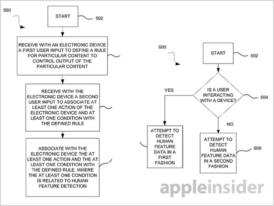 日前,美國專利和商標(biāo)局剛剛通過了蘋果一項(xiàng)新專利申請(qǐng),該項(xiàng)目被稱為“基于人類識(shí)別數(shù)據(jù)檢測(cè)控制內(nèi)容輸入的系統(tǒng)和方法”。這項(xiàng)專利可以利用電子設(shè)備的內(nèi)置傳感器檢測(cè)到用戶存在,并且根據(jù)檢測(cè)的數(shù)據(jù)來自動(dòng)判斷某些媒體的播放。例如在孩子進(jìn)屋之后,系統(tǒng)將自動(dòng)停止成人電影的播放。