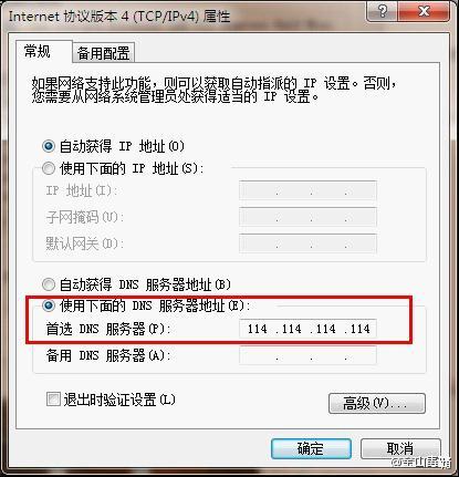或者將DNS服務(wù)器地址修改為114.114.114.114。