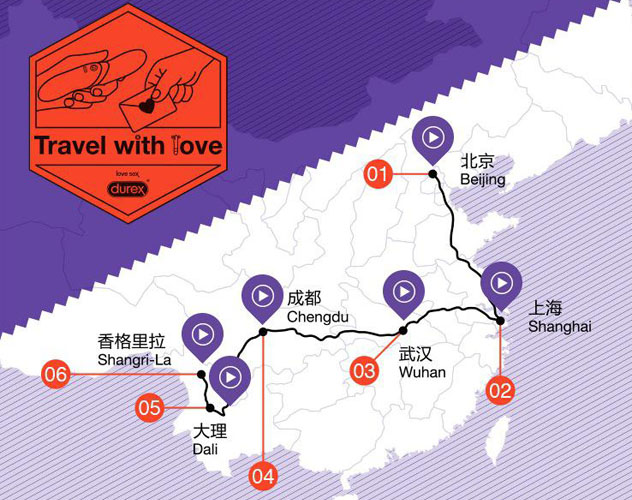 但這次傳播與以往有所不同的是杜蕾斯跳出了以往僅僅活躍于微博的圈子,而于線上線下同時(shí)傳播。它的推廣活動(dòng)預(yù)告首先發(fā)布于線上,并號(hào)召各地粉絲幫助這對(duì)情侶完成“煥覺(jué)之旅”。在情侶到達(dá)一個(gè)城市后,杜蕾斯官微會(huì)直播報(bào)告這對(duì)情侶在“交換物品”路上的趣聞,比如情侶在旅途中震動(dòng)棒被被機(jī)場(chǎng)安檢鑒定為家用電器,在大理當(dāng)街?jǐn)[攤用愛(ài)情故事交換震動(dòng)棒等都趣事都經(jīng)過(guò)官微得到了很好的傳播,由此我們也可以看出最好的創(chuàng)意往往來(lái)源于生活。