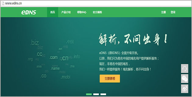 相信許多站長(zhǎng)們都有在易名中國(guó)注冊(cè)購(gòu)買(mǎi)過(guò)域名,除了提供域名申請(qǐng)注冊(cè)服務(wù)之外,還面向廣大用戶提供了免費(fèi)的域名解析服務(wù),它就是EDNS,目前非易名中國(guó)的用戶也是可以通過(guò)注冊(cè)登錄網(wǎng)站后臺(tái)進(jìn)行設(shè)置的,關(guān)于設(shè)置方法此處不再進(jìn)行詳細(xì)解說(shuō)。