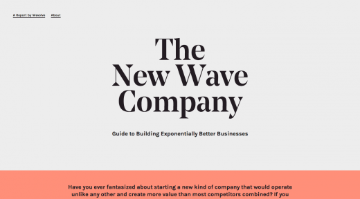 過去幾年中,網(wǎng)站設(shè)計(jì)中十分流行大標(biāo)題背景圖像,上面經(jīng)常有文字說明,這也是大多數(shù)訪客瀏覽網(wǎng)站時(shí)首先看到的東西。而在大標(biāo)題背景圖像如此流行的情況下,你的網(wǎng)站如何能脫穎而出呢?采取相反措施。近來出現(xiàn)的一些網(wǎng)站逆勢(shì)而行,即沒有大標(biāo)題背景圖像。我猜,他們這樣做不僅僅是不愿意追隨潮流,而且也在尋求提高網(wǎng)站的性能與速度。New Wave Company的網(wǎng)站就體現(xiàn)出這些特點(diǎn)。它使用大標(biāo)題歡迎訪客,大字體集中在網(wǎng)頁(yè)中心,但標(biāo)題后面沒有大背景圖片。這是一種高雅的做法,效果并不次于其他使用大背景圖像的流行網(wǎng)站設(shè)計(jì)。