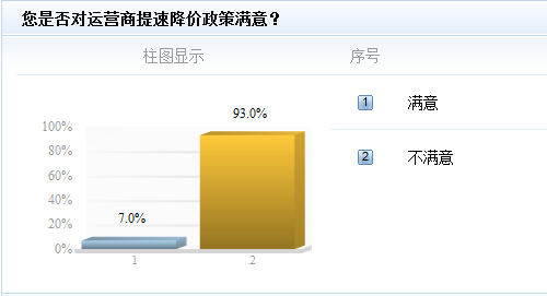 網易科技的相關調查顯示,93%的網民對運營商這次的提速降費政策不滿意,而97%的網友認為沒有感受到降價后帶來的實惠。從反饋信息來看,網友對移動數據流量降價最為期待,占70%;其次是寬帶提速,占25%,其次是語音。相形之下,運營商提速降費方案中關于移動數據和語音方面的策略,更多的是套餐組合和定向流量的形式實現“變相”降價。