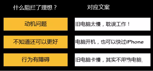 如果我們發現了一個人不想提高理想,只想安于現狀的原因,自然就有辦法通過文案來刺激TA的理想。