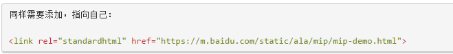 在某些情況下,站點對于同一個html頁面,可能存在兩種,一個是mip html,一個是standard html。 當百度檢索到你頁面的standard html時,你可以通過在mip中添加如下的代碼,以保證百度更好的檢索到你的mip html,同時也可以讓你的mip html更好的繼承standard html的權(quán)重等相關(guān)策略信息。