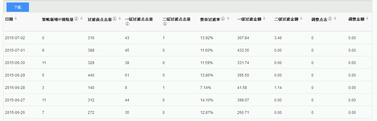 上圖為一賬戶中的7天的百度過濾點擊數(shù)據(jù)報告,我們可以看到,如果自己沒有進行【百度商盾】中的IP策略屏蔽,我們就會浪費很多的費用,而這些費用帶來的用戶都不是我們的目標人群。