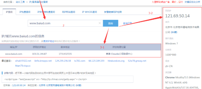 4、后面的IP,就是每個路由節點對應的IP。每個IP詳情可以通過站長工具的IP查詢進行查看。如下圖: