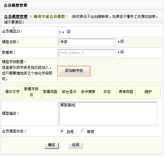 會員模型名稱:用于前臺顯示模型的名稱。例如:專家;