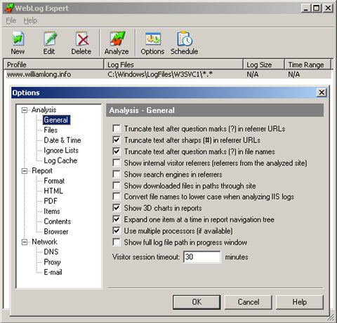 雖然Google Analytics是一款強大的免費的網站分析服務,但必須加入統計代碼才能使用,WebLog Expert則可以直接分析網站的訪問日志文件,通過日志文件分析出網站的站點訪問者、活動統計、文件訪問量、搜索引擎、瀏覽器、操作系統和錯誤頁面等等眾多的統計信息,是網絡監測的好助手。這個軟件本身不免費,不過其另一個版本WebLog Expert Lite是免費的。