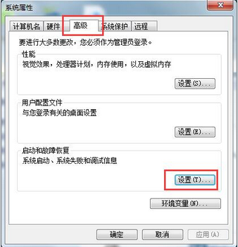第三步:在出現的系統屬性窗口直接選擇高級選項,并點擊啟動和故障恢復的設置按鈕。