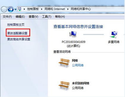 2、然后選擇打開(kāi)“更改適配器設(shè)置”。如下圖: