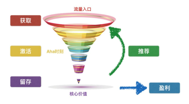 用最近比較火的增長黑客概念來拆解下這個問題,增長黑客最常見的漏斗理論,即獲客、激活、留存、轉化(盈利)、自傳播。