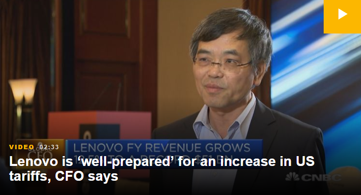聯想首席財務官黃偉明在接受CNBC采訪時表示:“我們顯然做好了充分準備,以防萬一。”