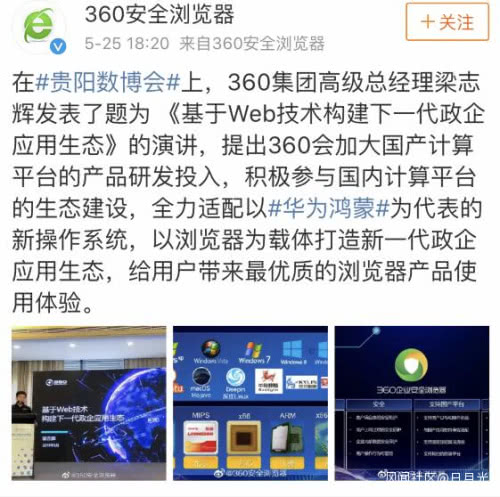 《基于Web技術(shù)構(gòu)建下一代政企應(yīng)用生態(tài)》的演講,提出360會(huì)加大國產(chǎn)計(jì)算平臺(tái)的產(chǎn)品研發(fā)投入,積極參與國內(nèi)計(jì)算平臺(tái)的生態(tài)建設(shè),全力適配以#華為鴻蒙#為代表的新操作系統(tǒng),以瀏覽器為載體打造新一代政企應(yīng)用生態(tài),給用戶帶來最優(yōu)質(zhì)的瀏覽器產(chǎn)品使用體驗(yàn)。