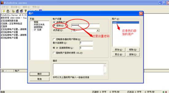 1、進(jìn)入用戶管理界面后開(kāi)始設(shè)置FTP用戶名和目錄等相關(guān)的信息