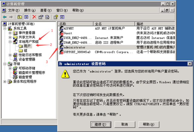 3、鼠標左鍵雙擊-->本地用戶和組;雙擊用戶在要修改的用戶名上右鍵-->選擇修改密碼: