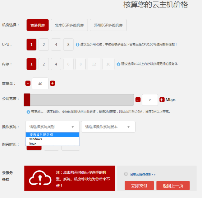 云主機(jī)購(gòu)買時(shí)長(zhǎng)可自由選擇月付、年付或者兩年付等,購(gòu)買時(shí)間越長(zhǎng)越劃算,目前億恩云主機(jī)是年付只需花10個(gè)月的費(fèi)用享受12個(gè)月的使用,兩年付享受9折優(yōu)惠。